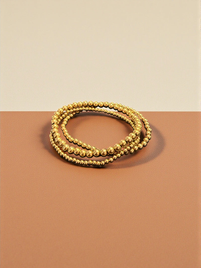 Stack elegance on your wrist with the Jane Gold Beaded Triple Bracelet—three stunning strands of shimmering gold beads designed to layer beautifully together or wear separately. Crafted with waterproof materials, these bracelets withstand daily adventures without losing their luster. Hypoallergenic construction makes them perfect for sensitive skin, so you can wear them worry-free from morning to night. Mix, match, and shine!